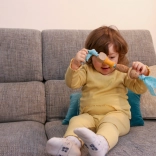 Schütteln, werfen, drehen und rollen – die Raupe bietet viele Spielmöglichkeiten, die Kinder begeistern und fördern.