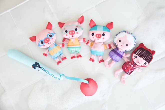 Entdecken Sie das originelle Wasserspiel, in dem Rotkäppchen, die Großmutter und die drei kleinen Schweinchen im Teich schwimmen und der witzige Wolf Ludwig sie nacheinander angelt. Dank der Magnetrute ist das Angeln einfach und macht Spaß, zugleich fördert es die Feinmotorik, Konzentration und Geduld der Kinder.