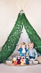 Esel Ignace, Kuh Rosalie, Schweinchen Simon, Schaf Yvon, Henne Paulette und Ente Gaston laden zu Geschichten und kreativem Spiel ein.