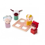 Die Köpfe der Figuren werden mittels Klettverschluss an Holzblöcken befestigt – einfach, spaßig und ideal zur Förderung der Vorstellungskraft.