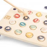Dieses Spiel ist ideal für 2-4 Spieler im Alter von 6 Jahren. Die Spieler wechseln sich beim Würfeln ab und versuchen dann, das passende Holzstück einzusetzen. Ziel des Spiels ist es, so schnell wie möglich seine eigene Karte zu füllen und der Gewinner zu werden.
