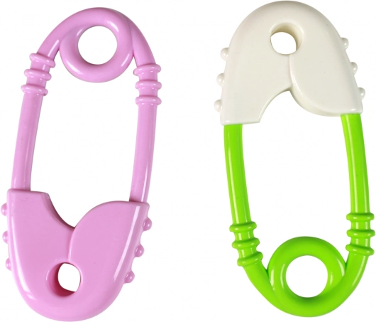 Dieses farbenfrohe Rassel- und Beißspielzeug in Form einer großen Sicherheitsnadel ist für die Kleinsten konzipiert. Es kombiniert einen stimulierenden Rassel-Effekt mit weichen Texturen zur Beruhigung des Zahnfleischs während des Zahnens. Dank der ergonomischen Form mit rundem Griff liegt es auch in kleinen Händchen sehr gut.