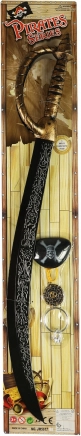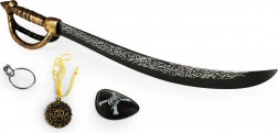 Tauche in die Welt der Piraten ein mit einem kompletten Set, das jedes Kostüm in ein unvergessliches Erlebnis verwandelt. Der gekrümmte Piraten-Säbel mit reich verzierter Klinge und schwarz-goldenem Griff sieht großartig aus und ist dank des leichten Kunststoffs ideal für sicheres Spielen. Dazu kommen ikonische Accessoires – eine Augenklappe, ein Medaillon an der Schnur und ein Ohrring.
