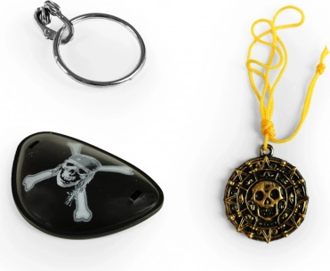 Neben dem Säbel erhältst du eine Augenklappe, ein Medaillon an einer Schnur und einen Ohrring – alles für einen authentischen Piraten-Look im Handumdrehen.
