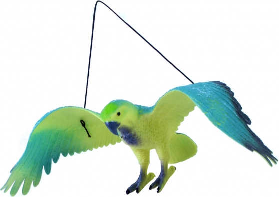 Beleben Sie den Raum mit hängenden Papageien im realistischen Flug. Dank der leichten Konstruktion und dem elastischen Gummiband hängen Sie sie überall einfach auf – über dem Bett, am Fenster oder in der Spielecke. Beim Drücken pfeift der Papagei, was den Spielspaß und die Interaktivität erhöht.
