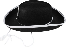 Verleih dem Kostüm eines kleinen Cowboys einen authentischen Look. Dieser Kinder-Cowboyhut in elegantem Schwarz ist mit einem markanten Sheriffstern und einer weißen Umrandung versehen, die einen stilvollen Kontrast bildet. Die Kinnschnur sorgt dafür, dass der Hut auch beim Toben gut sitzt.