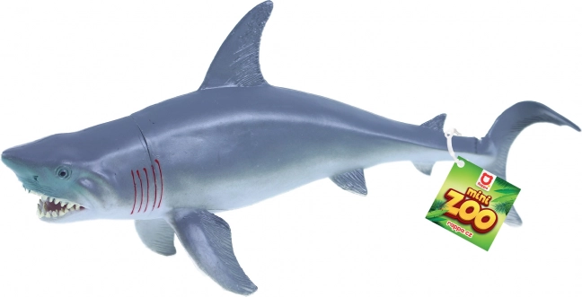 Plastikhai mit einer Größe von 34 cm, erhältlich in zwei verschiedenen Ausführungen. Ideal für Kinderspiele und Sammlerzwecke.