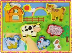 Das Holzeinlegepuzzle mit Bauernhoftieren ist ein großartiges Werkzeug zur Förderung der motorischen Fähigkeiten Ihres Kindes. Dank dieses Spiels lernen Kinder, Formen und Tiere zu erkennen. Darüber hinaus:
