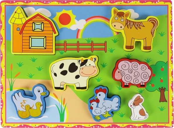 Dieses Holz 3D Einlegepuzzle ist ideal für die kleinsten Kinder, die die Welt um sich herum entdecken möchten. Mit Tiermotiven vom Bauernhof wird Ihr Kind viel Spaß haben und gleichzeitig seine motorischen Fähigkeiten entwickeln.
