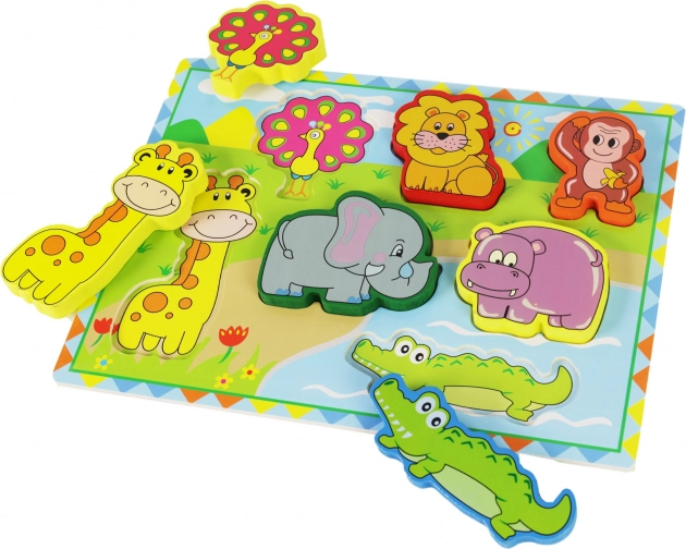 Holz 3D Puzzle mit Safari-Tiermotiven ist ideal zur Entwicklung der motorischen Fähigkeiten von Kindern durch das unterhaltsame Einfügen von Formen.