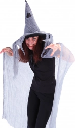 Perfektes Set für Halloween oder Karneval! Zaubermantel in grauer Farbe mit Hut, die dich garantiert hervorheben lässt!