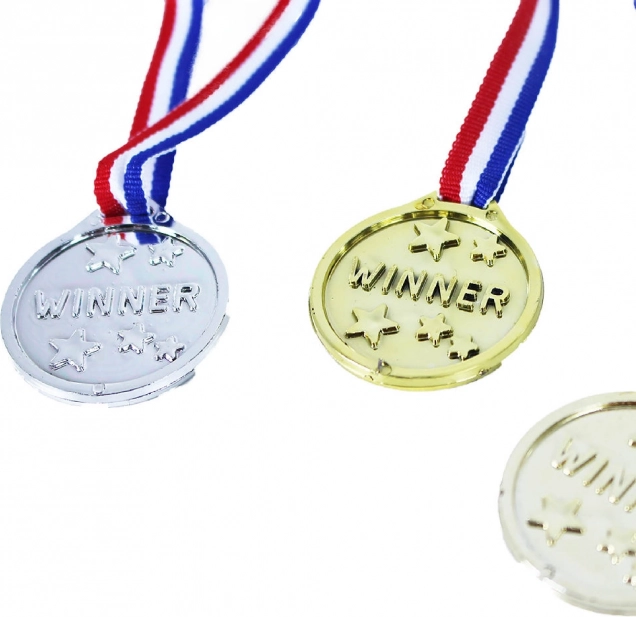 Belohnen Sie Ihre Freunde mit echten Medaillen! Das Set enthält eine goldene, eine silberne und eine bronzene Medaille, alle an einem praktischen Band.