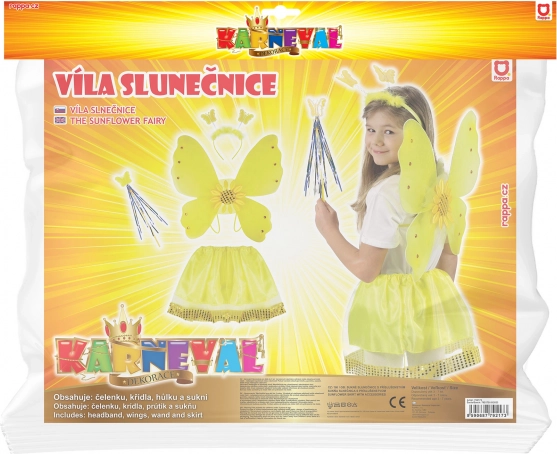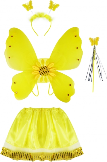 Das strahlend gelbe Kostüm fällt sofort ins Auge – glitzernde Details, zarte Steinchen und die Blüte in der Mitte der Flügel sorgen für einen zauberhaften Look. Das voluminöse Tutu ist am Saum mit goldenen Pailletten eingefasst und funkelt bei jeder Bewegung wunderschön.