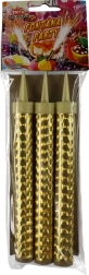 Lassen Sie jede Feier erstrahlen mit diesen goldenen Partyfontänen mit einer Länge von 12 cm. Im Set sind 3 Stück mit goldenem Sternchen-Effekt und einer ungefähren Brenndauer von 40 Sekunden. Geeignet nur für den Außenbereich.