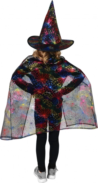 Metallische, mehrfarbige Spinnennetze auf Umhang und Hut sorgen für einen auffälligen Look bei jedem Event.