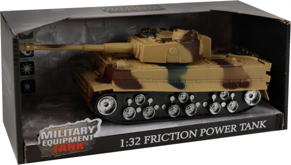 Dank des Friktions- (Schwungrad-)Mechanismus fährt der Panzer nach dem Anstoßen nach vorn. Der praktische Maßstab 1:32 liegt gut in der Hand.