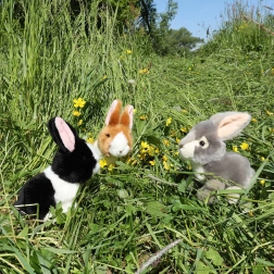 Wählen Sie aus Grau, Schwarz-Weiß oder Braun-Weiß. Jeder Hase ist ein kuschelweicher Begleiter zum Spielen und Einschlafen.