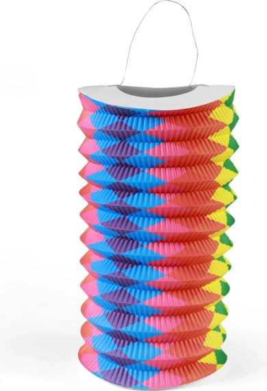 Der Regenbogen-Lampion bringt fröhliche Farben und eine spielerische Stimmung zu jedem Anlass. Er besticht durch markante Streifen in Rot-, Gelb-, Grün- und Blautönen, die bei Tageslicht und abends mit Beleuchtung besonders schön zur Geltung kommen. Ein perfektes Accessoire für Laternenumzüge, Geburtstagsfeiern und saisonale Dekorationen.