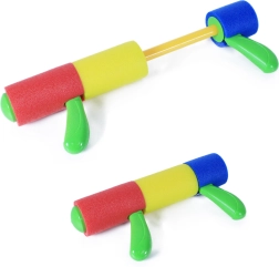 Weiche Schaumstoffmaterialien ermöglichen das einfache Aufsaugen von Wasser und Bespritzen von Zielen. Die Wasserspritzpistole ist farblich variabel, was zum attraktiven Aussehen des Spielzeugs beiträgt. Dank des einfachen Pumpmechanismus ist sie selbst für kleinere Kinder leicht zu bedienen.