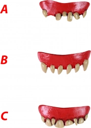 Wählen Sie aus drei Zahnarten, die Ihrem Kostüm Spaß und Originalität verleihen.