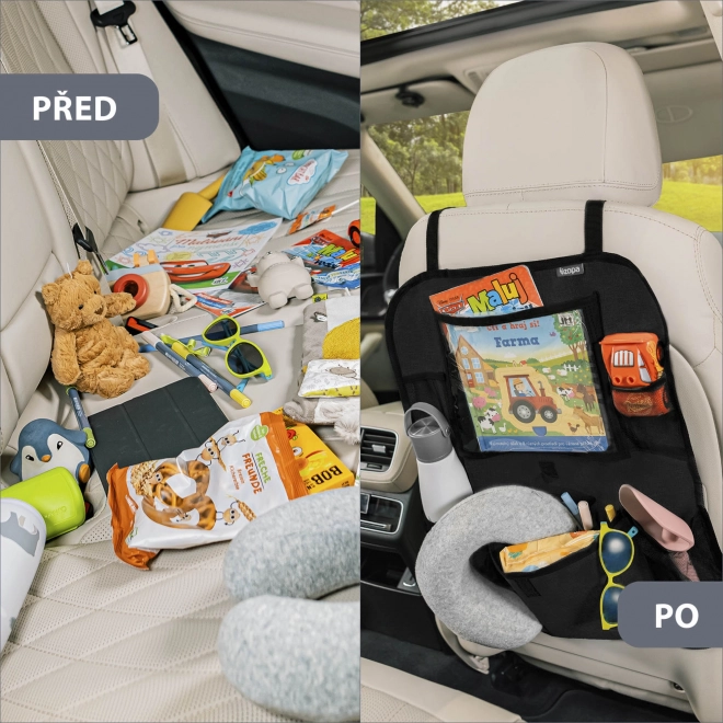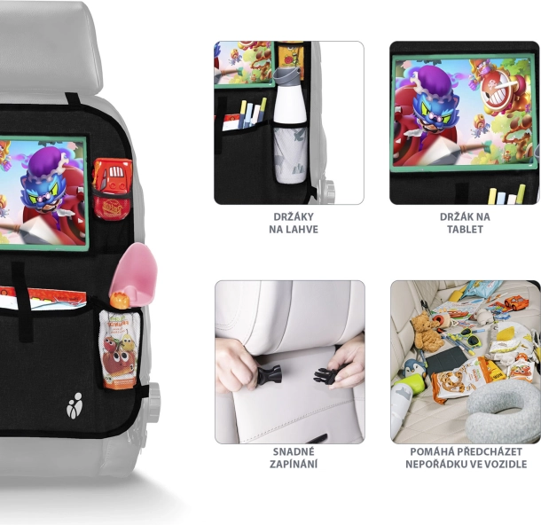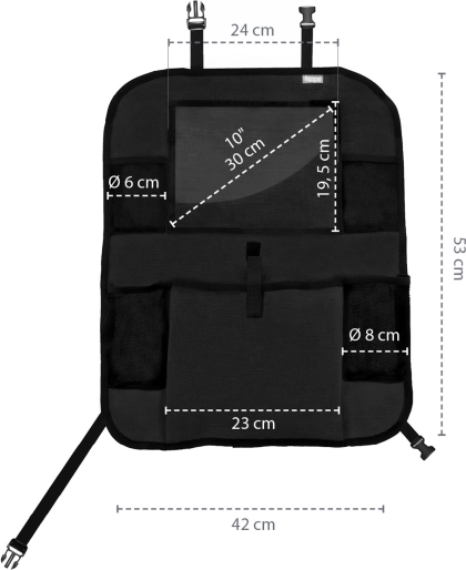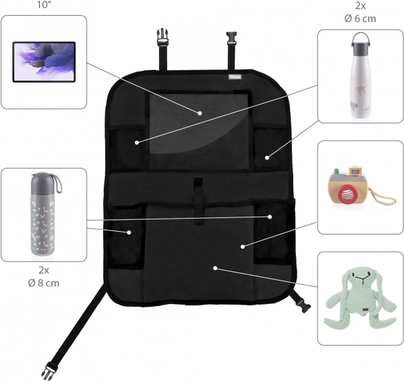 Praktischer Sitz-Organizer mit Tablettasche ist der perfekte Begleiter für jede Fahrt mit Kindern.