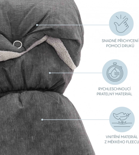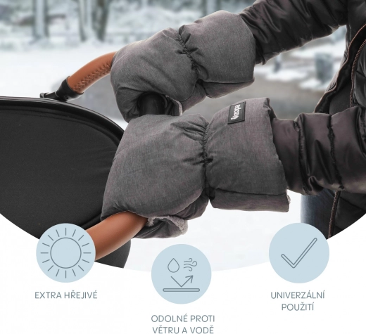 Suchen Sie eine praktische Lösung, um auf Winterspaziergängen stets warme Hände zu haben? Diese universellen Kinderwagen-Handschuhe lassen sich dank Druckknöpfen leicht befestigen und schützen zuverlässig vor Wind und Feuchtigkeit. Das innere Fleece ist besonders angenehm auf der Haut und bietet extra Wärme während der gesamten Nutzung.
