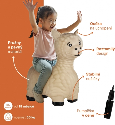 Im Lieferumfang ist eine praktische Pumpe enthalten. Das Hüpftier lässt sich leicht aufpumpen und ablassen – ideal für unterwegs und schnelles Verstauen.