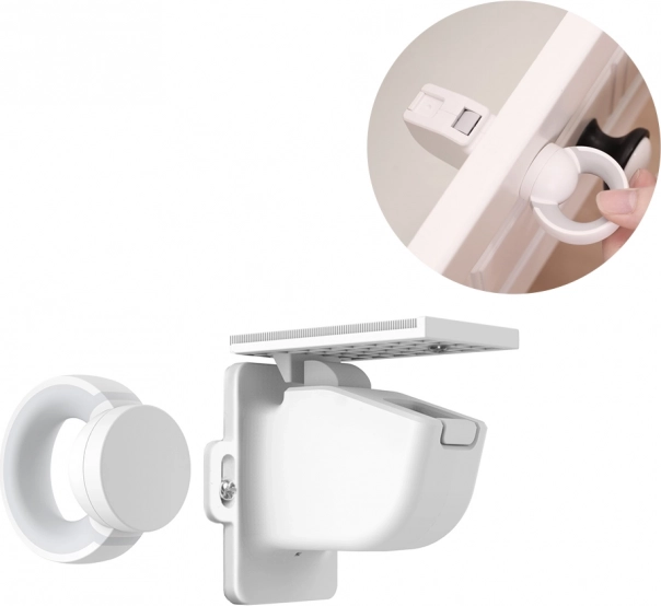 •  Der magnetische Verschluss verfügt außerdem über eine praktische Sperrfunktion. Wenn Sie den Schrank durchgehend nutzen – zum Beispiel in der Küche beim Kochen – können Sie den Verschluss vorübergehend deaktivieren und ihn wieder aktivieren, sobald der Schrank unberührt und kindersicher bleiben soll.