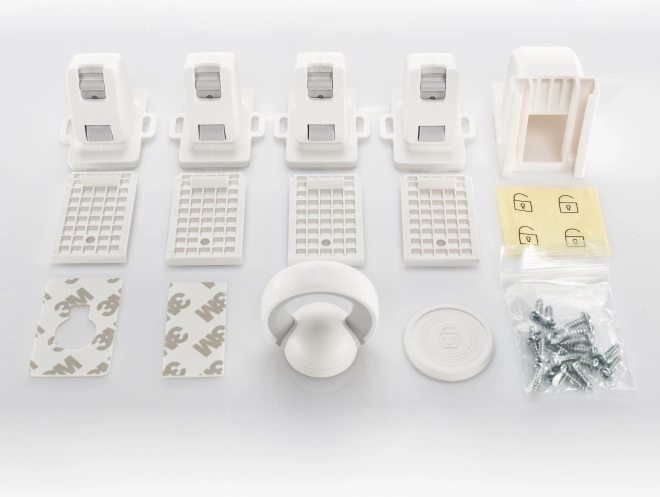 •  Der Lieferumfang umfasst 4 Verschlüsse, eine Schablone für leichtere Montage, einen Magnetschlüssel, hochwertiges 3M-Klebeband, ein Set Schrauben sowie Info-Aufkleber für das präzise Ansetzen des Magnetschlüssels. Ebenfalls enthalten ist eine Wandhalterung zur Aufbewahrung des Schlüssels, damit er stets griffbereit ist.