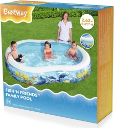 Der aufblasbare Pool BESTWAY Fish 'n Friends verwandelt Ihren Garten in ein buntes Unterwasser-Königreich. Die ovale Form bietet viel Platz zum Spielen und Planschen, während die breiten Seitenwände Komfort und Stabilität sicherstellen. Hochwertiges PVC/Vinyl widersteht der normalen Nutzung an heißen Sommertagen.