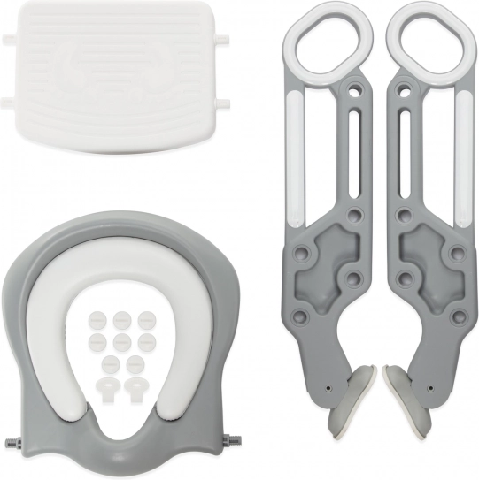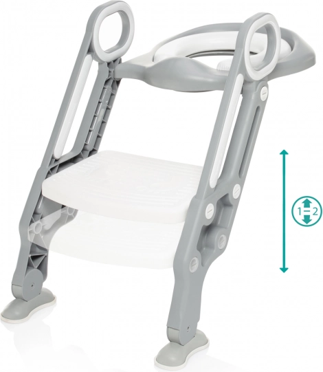 Dank der Höhenverstellbarkeit wachsen die Stufen mit Ihrem Kind mit, bis es sie nicht mehr benötigt. Die stabile Konstruktion sorgt dafür, dass sich das Kind beim Hinaufklettern und Sitzen sicher fühlt. Die Füße sind mit einer speziellen rutschfesten Schicht ausgestattet, die ein stabiles und sicheres Gefühl vermittelt. Bestandteil der Stufen ist auch ein weicher und bequemer Sitz, der als Reduzieraufsatz für die normale Toilette dient. Die anatomische Form des Sitzes zusammen mit der erhöhten Rückseite verhindert ungewollte Verschmutzungen effektiv.