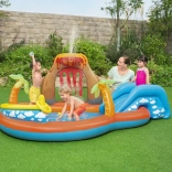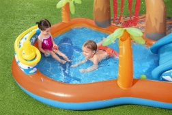 Das aufblasbare Wasser-Spielcenter Bestway Vulkan verwandelt Ihren Garten in ein Zentrum sommerlicher Unterhaltung. Kinder genießen das Rutschen auf der weichen aufblasbaren Rutsche, das Planschen unter dem Wassersprinkler und das Spielen mit Bällen und Wurfelementen. Dank des flachen Planschbereichs ist das Spielcenter ideal für die Kleinsten, während robustes PVC und ein Ablassventil die Nutzung und Pflege erleichtern.