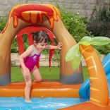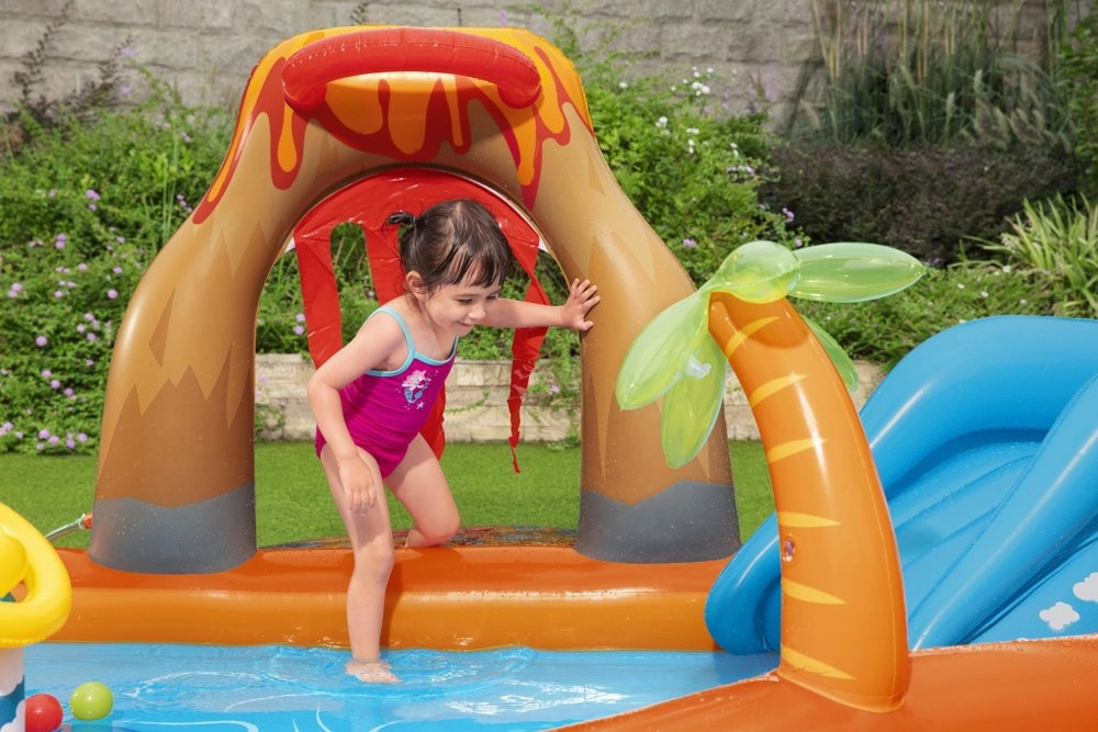 Die weiche aufblasbare Rutsche und der Vulkansprinkler machen jeden Tag zu einem erfrischenden Abenteuer. Einfach den Gartenschlauch anschließen und der Spaß kann beginnen.