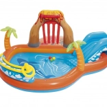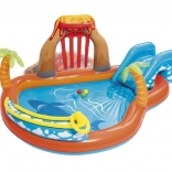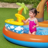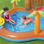 Für maximalen Komfort gibt es ein abnehmbares Planschbecken, ein praktisches Ablassventil und einen Reparaturflicken im Lieferumfang. Das farbenfrohe, tropische Design lädt zum Entdecken ein und fördert aktive Bewegung sowie kreatives Spiel.