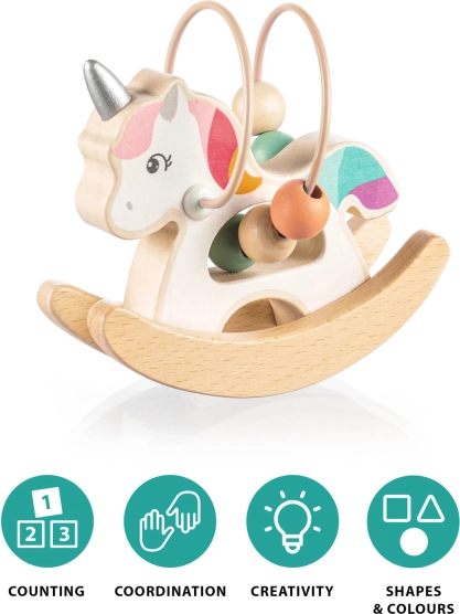 Das Holz-Aktivitäts-Einhorn ist so gestaltet, dass es unterhält und gleichzeitig lehrt. Kinder können dieses kompakte Spielzeug leicht greifen, was es zum idealen Begleiter für ihre Abenteuer macht. Neben dem klassischen Schaukelmodus bietet das Einhorn interaktive Elemente, die Koordination und Kreativität fördern.