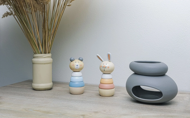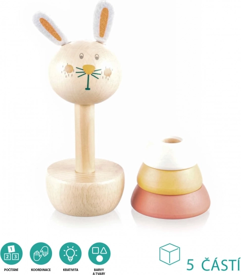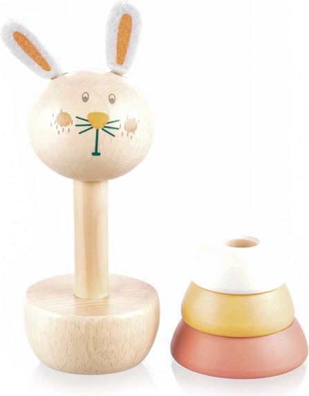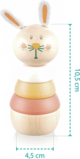 Beschäftigen Sie Ihr Kind stundenlang mit diesem wunderbaren Steckspielzeug in Form eines Häschens. Kinder genießen das Spielen mit den Holzringen, die zerlegt und wieder zusammengesetzt werden können. Das niedliche Häschen-Design wird sie erfreuen und ihre Aufmerksamkeit fesseln, während es spielerisch die Motorik und das räumliche Denken fördert.