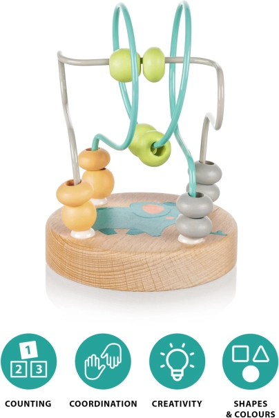 Das Bewegen der bunten Perlen entlang der Metalldrähte ist nicht nur Spaß, sondern auch eine Möglichkeit, wie das Kind das erste Zählen und Farberkennung erlernen kann. Dieses Labyrinth ist kompakt, was es leicht tragbar und ideal für Reisen und das Spielen zu Hause macht.