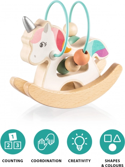 Interaktives Holzspielzeug mit Einhorn, das Kinder stundenlang beschäftigt.