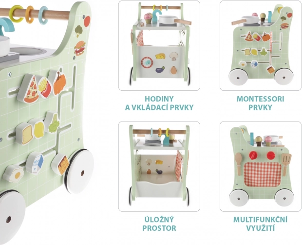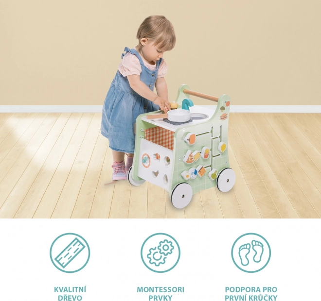 Die niedliche Lauflernhilfe in Form einer Küche begleitet Ihr Kind sicher bei den ersten Schritten. Zum Halten der Balance dient der Holzgriff, an dem sich das Kind festhalten kann. Vier leise Räder unterstützen beim Erlernen von Stabilität und den ersten Schritten.