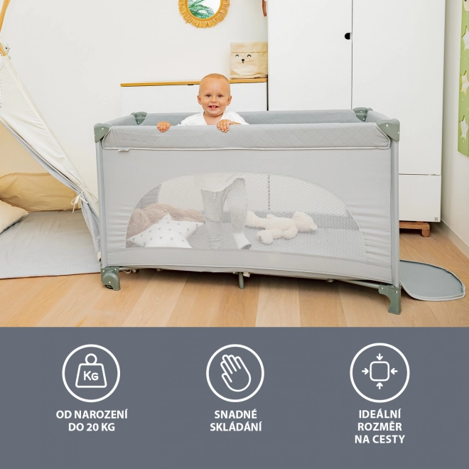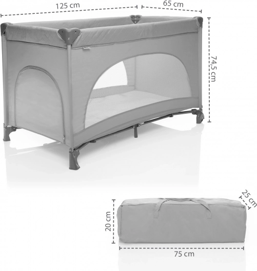 Das Reisebett Lely sorgt unterwegs für einen komfortablen Schlaf des Kindes. Es verfügt über eine bequeme, weiche Matratze und besteht aus atmungsaktivem Material. Kinder können darin ab der Geburt bis zu einem Gewicht von 20 kg schlafen.