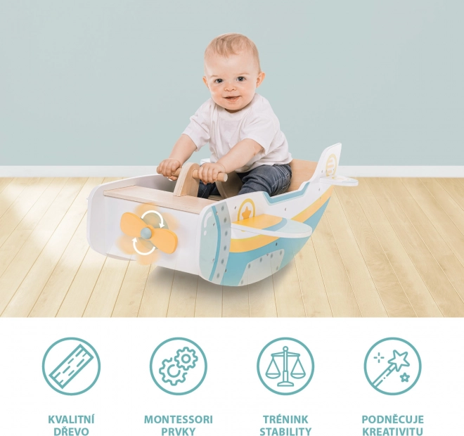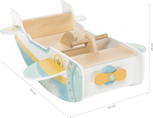 Ein Flugzeug, das startklar ist und Kindern stundenlangen Spaß bietet. Sicheres Schaukeln wird durch zwei Haltegriffe im vorderen Bereich gewährleistet. Der breite Sitz verfügt über eine Rückenlehne, falls das Kind nur sanft mit dem eigenen Gewicht schaukeln möchte. Die Flugzeugschaukel besteht aus hochwertigem, strapazierfähigem Buchenholz. Alle verwendeten Farben sind gesundheitlich unbedenklich und auf Wasserbasis.