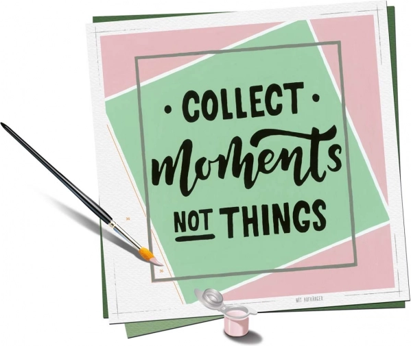 Dieses vielseitige Kreativset wurde entwickelt, um Sie dazu zu inspirieren, die schönsten Momente festzuhalten. Das Motiv „Collect Moments Not Things“ ermutigt zu Werken mit persönlicher Bedeutung und sorgt zugleich für wohltuende Entspannung beim Malen und Dekorieren.