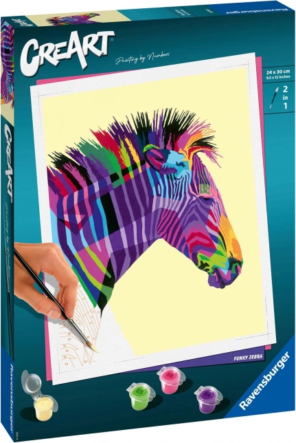 Das CreArt-Set mit dem Motiv Funky Zebra ist eine großartige Möglichkeit, Fantasie und Feinmotorik zu fördern. Dank Malen nach Zahlen können Sie sich leicht konzentrieren, abschalten und gleichzeitig ein beeindruckendes Bild schaffen, das jede junge Künstlerin und jeden jungen Künstler begeistert.