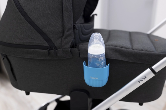 Entdecken Sie den praktischen Universal Getränkehalter in Blau, perfekt zur Befestigung an Kinderwagen und mehr, für Flaschen bis zu einem Durchmesser von 8 cm.