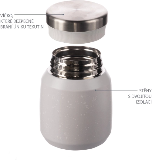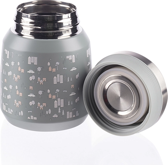 Ein hochwertiger Thermobehälter für Speisen und Breie mit einem Volumen von 300 ml hält warme Speisen bis zu 12 Stunden und kalte bis zu 24 Stunden. Er besteht aus hochwertigem rostfreiem Edelstahl, der korrosionsbeständig ist. Der dicht schließende Deckel sorgt dafür, dass nichts ausläuft. Dank der Vakuumisolierung erwärmt sich die Außenseite bei heißem Inhalt nicht.