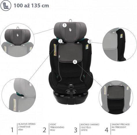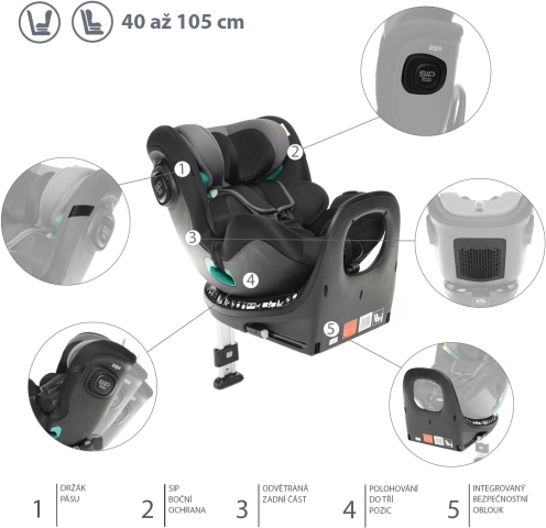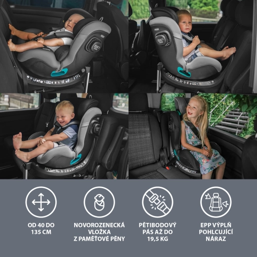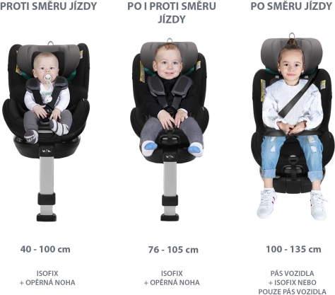 Von Geburt bis 19,5 kg schützt die Kinder ein 5-Punkt-Sicherheitsgurt mit hochwertiger Immi-Schnalle. In dieser Phase wird der Autositz mit Isofix und Stützfuß befestigt. Kinder können bis 105 cm rückwärtsgerichtet fahren. Dank der Drehfunktion kann ab 76 cm auch vorwärtsgerichtet gefahren werden. Wenn das Kind größer wird, wechseln Sie einfach zur Befestigung mit dem 3-Punkt-Gurt des Fahrzeugs. Der Stützfuß wird unter den Autositz geklappt. Ihr Kind ist von Geburt bis 135 cm perfekt geschützt.