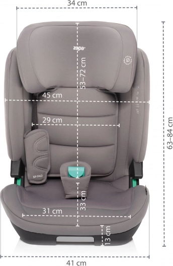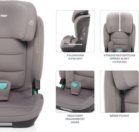 Geräumiger Kindersitz mit weichen Bezügen und der Möglichkeit, ihn in 4 ergonomische Positionen zu neigen, sorgt für eine bequeme Fahrt auch bei längeren Strecken und während des Schlafs. Die Neigung lässt sich einfach über eine Verriegelung an der Vorderseite des Kindersitzes einstellen. Die Kopfstütze bietet bis zu 10 Einstellpositionen, sodass der Sitz mit dem Kind mitwächst.
