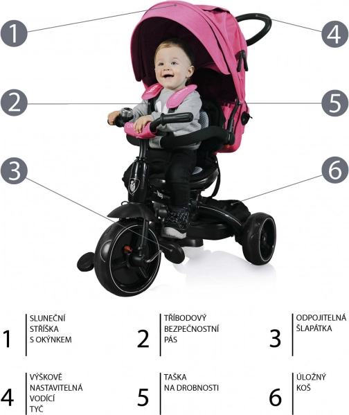 Kinderdreirad mit drehbarem Sitz und Verdeck rosa ECO TOYS