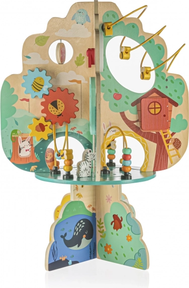 Breite Palette an interaktivem Spaß durch Perlenlabyrinthe, drehbare Elemente und Tierillustrationen.