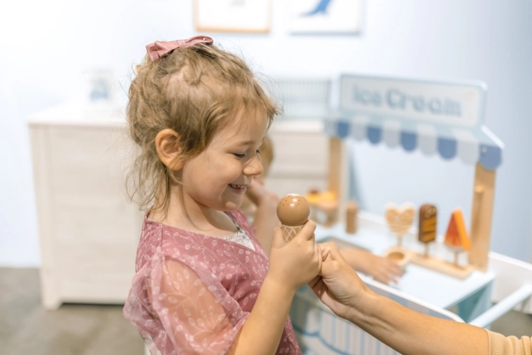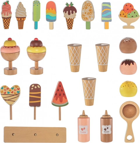 Das Set enthält verschiedene Eisköstlichkeiten zur Förderung der kindlichen Fantasie.